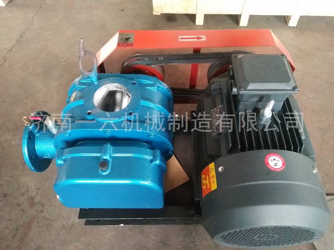 罗茨鼓风机是容积式旋转鼓风机。这种类型的压缩机通过转子轴末端的同步齿轮保持两个转子啮合。转子的凹形弯曲表面的每个部分和圆柱体的内壁构成工作容积,并且在转子旋转期间气体从吸入口移除,并且当其朝向排气口附近移动并且通信时在排气口处,由于较高的压力,气体再循环,此时工作容积中的压力突然增加,并且气体被输送到排气管道。两个转子彼此不接触,并且密封件由它们之间的空间密切控制,使得润滑气体不会污染排出的气体。