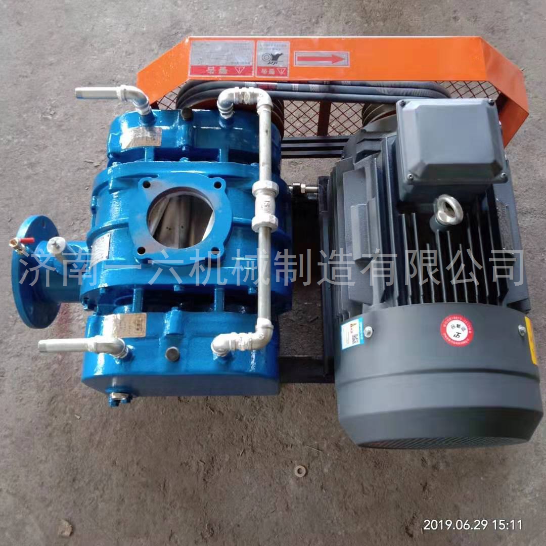 在两根平相行的轴上设有三个三叶型叶轮,轮与椭圆形机箱内孔面及各叶轮三者之间始终保持微小的间隙,由于叶轮互为反方向匀速旋转,使箱体和叶轮所包围着的一定量的气体由吸入的一侧输送到排出的一侧。各支叶轮始终由同步齿轮保持正确的相位,不会出现互相碰触现象,因而可以高速化,不需要内部润滑,而且结构简单,运转平稳,性能稳定,适应多种用途,已运用于广泛的领域