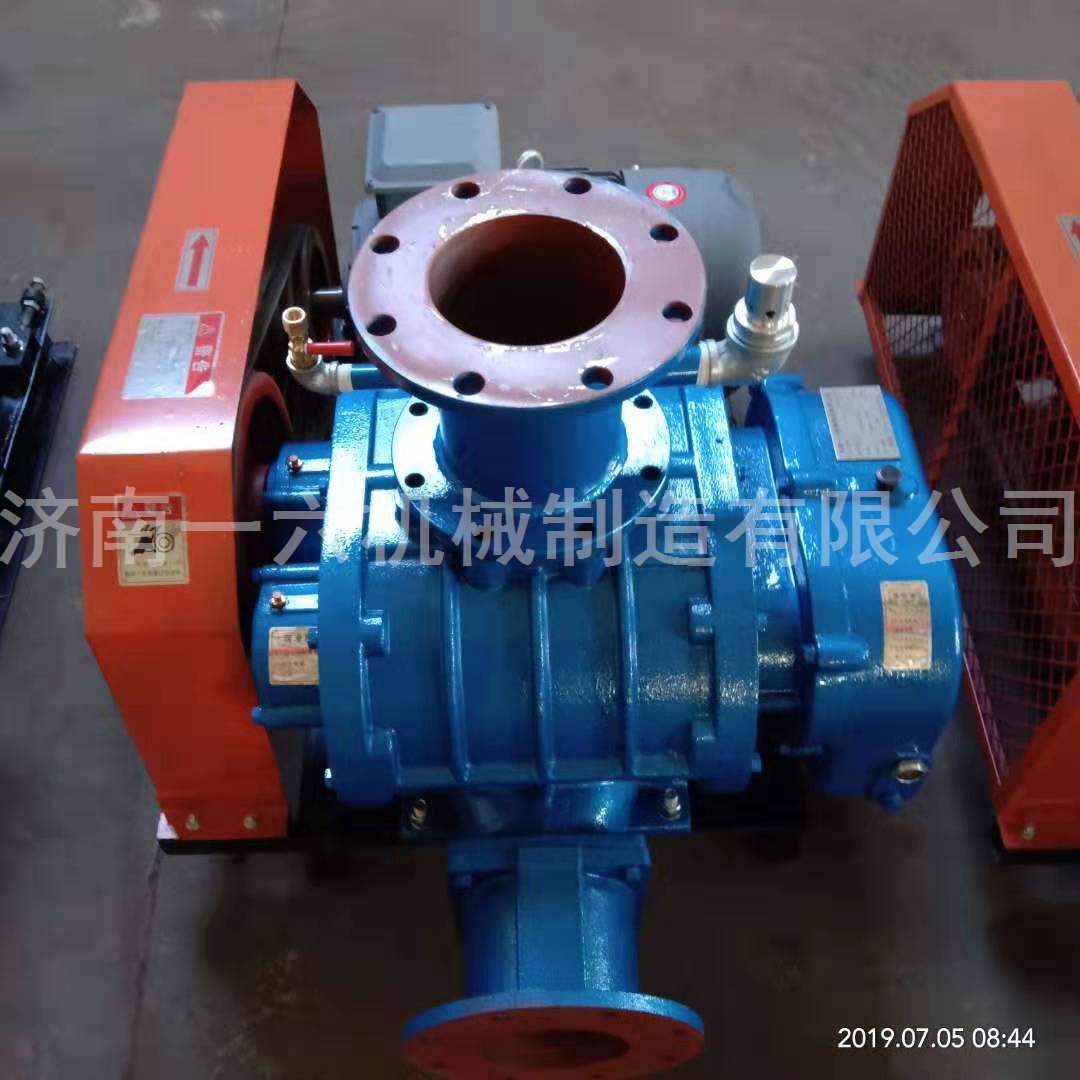 油位系统中加入润滑油,鼓风机、真空泵工作时,油位可能会略有下降。)油量太少会导致齿轮和轴承润滑不良。如果流量太大,油温会升高,齿轮和其他零部件会受损。润滑油使用美国DTE重水反应堆涡轮油(ISOVG68)或质量可靠的L-TSA68汽轮机油。鼓风机、真空泵在使用中间轴皮带轮传动时,必须在中间轴两端的轴承底座上填满2号通用锂底座润滑脂,并填满轴承座自由空间的1/2至1/3。用于脱硫风机罗茨风机属于旋转用风机,风量与风机速度成正比,基本不受风口阻力变化的影响。这种轻风特性决定了不能通过拖动风口或进水口的方法来调节风量,优化了这些主要工艺过程后,大量过剩的风量调节只能绕过,导致风机能量的大量损失,磨损引起的腐蚀问题突出,经常需要防通阀。罗茨风机主要由两个装有外壳、墙板和叶轮的转子组成。通过一对同步齿轮,使两个转子以相反的速度旋转,依靠叶轮和叶轮之间、叶轮和外壳之间的间隙,基本上切断进气口和排气腔,通过叶轮的旋转,推动外壳容积内的气体,达到北风目的。罗茨风机由于变频控制,可以准确控制风量,比阀门控制更直观,更容易控制风机风量,满足生产需求。由于变频技术,电机实现了软起动,没有启动电流冲击。原来没有使用变频器的时候,电动机直接启动,启动电流高达200-300A,对电动机或电网产生了不利影响。现在使用变频器软启动,启动电流不超过额定电流46A,减少风机出口压力,瞬间提高对风机的冲击,延长风机和其他设备的寿命。风机速度降低到原来的60%,大大减少了风机管道振动频率和噪音,延长了风机、电动机轴承的机械寿命,减少了设备的维护量。